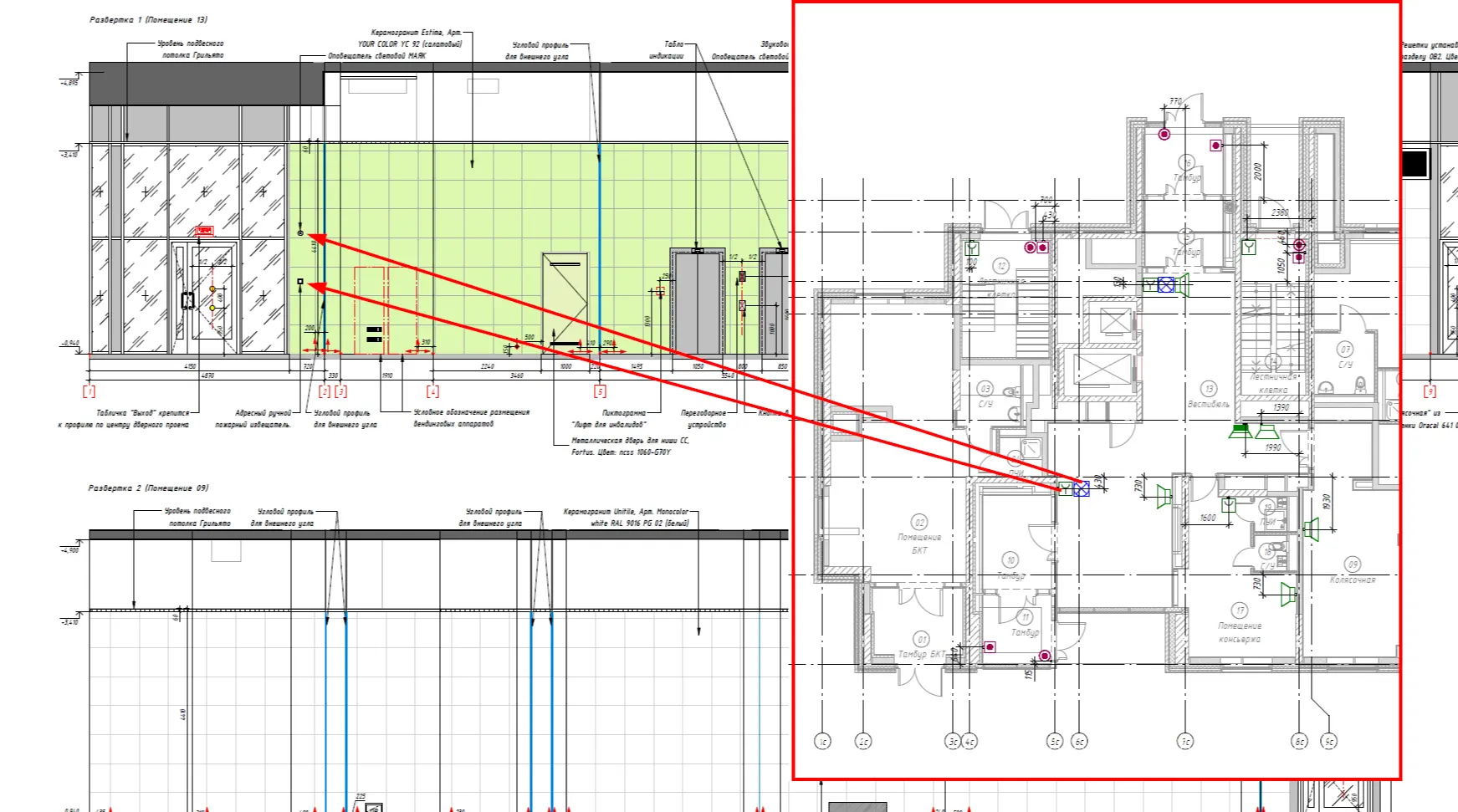 1. В pdf АР находим листы Развертка стен МОП....