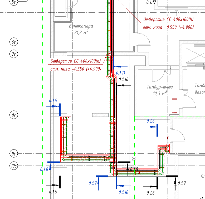 GM_отверстие прямоугольное (в стене):Отверстие) в местах прохода сетей через стены. Формируем марки отверстий