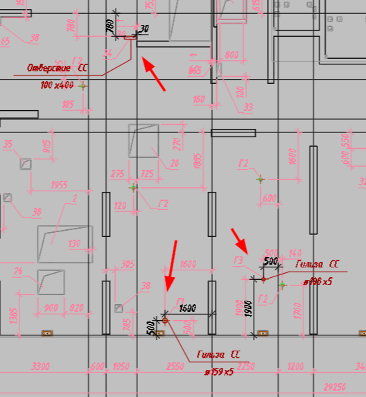 2. В КЖ находим план Схема расположения инженерных отверстий в плите покрытия на отм..... Открываем полученный dwg файл.
