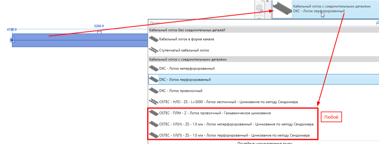 Выделяем весь лоток и меняем типоразмер на любой, начинающийcя с OSTEC.