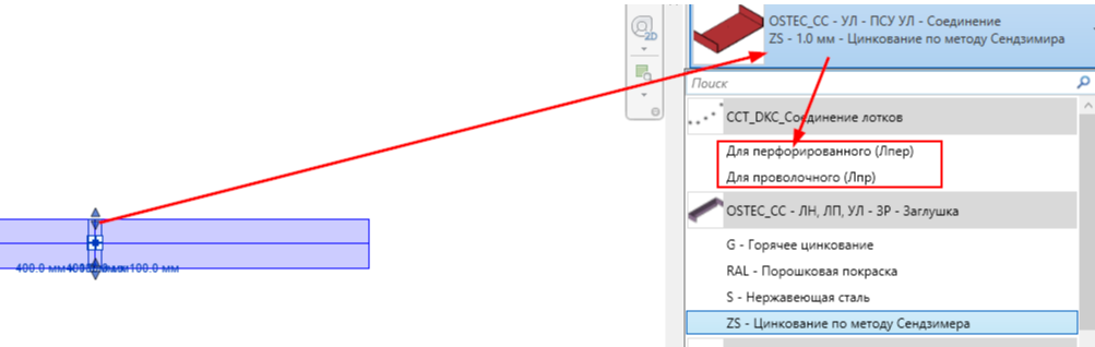 Выделяем все появившиеся соединители и через свойства меняем на необходимое семейство.